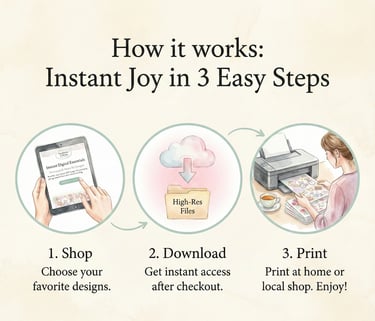 Beautiful, easy-to-print PDF designs for packaging, gifting, seasonal decor and creative journaling.