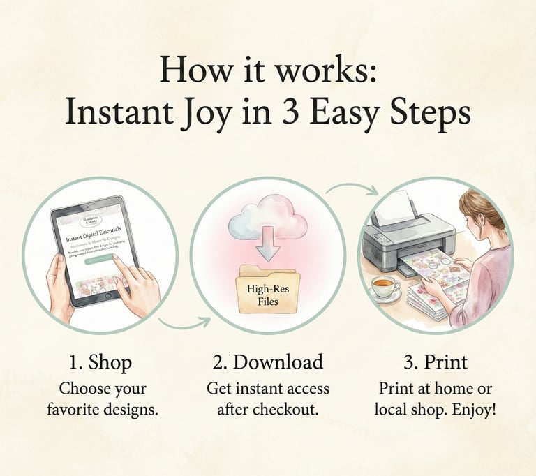 Experience the effortless joy of instant download printables with Mandarina & Menta.