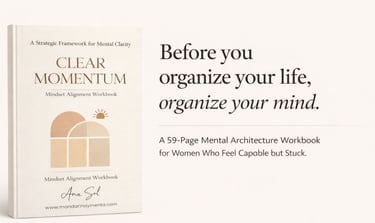 If you would like to explore these ideas more deeply, I gathered the eleven foundational mindset principles that transformed my own approach into a structured workbook called Clear Momentum. It is a reflection-based guide designed to help you realign your thinking, rebuild internal clarity, and create sustainable progress, especially during demanding seasons of life.